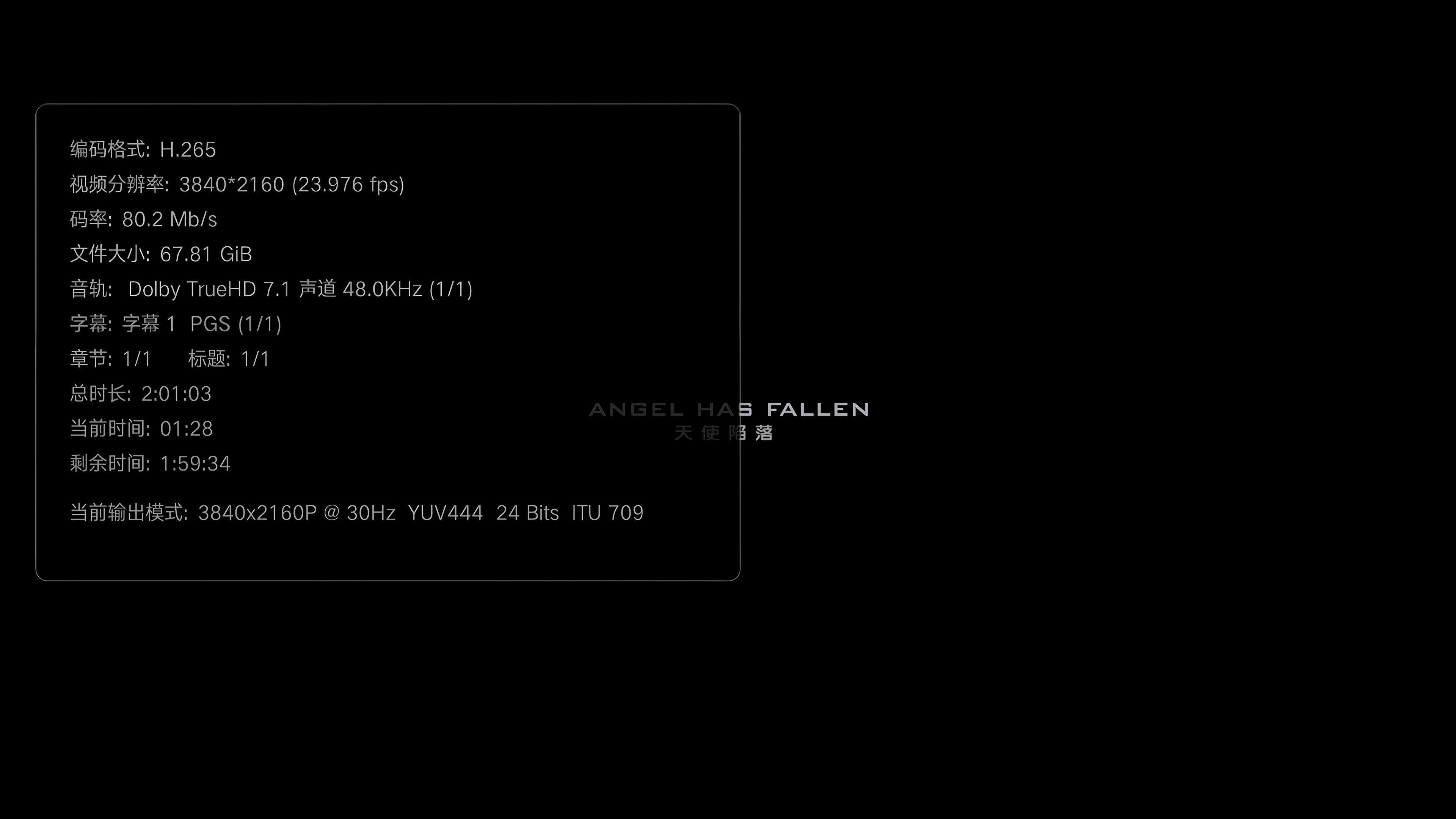 天使陷落.Angel Has Fallen.2019.2160p.UHD.Bluray.REMUX.HEVC.国语 TrueHD Atmos 7.1.4 特效中文字幕 杜比世界【68GB】