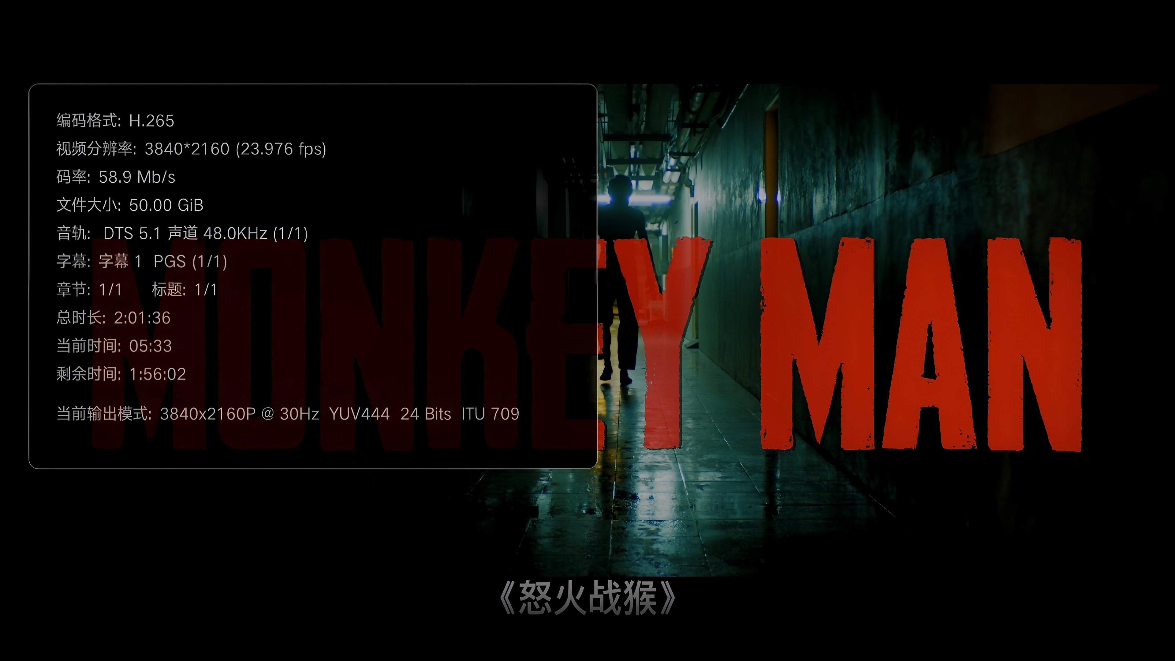 怒火战猴.Monkey Man.2024.2160p.UHD.BluRay.REMUX.HEVC.国语 DTS-HDMA 5.1 16bit 特效中文字幕【50GB】