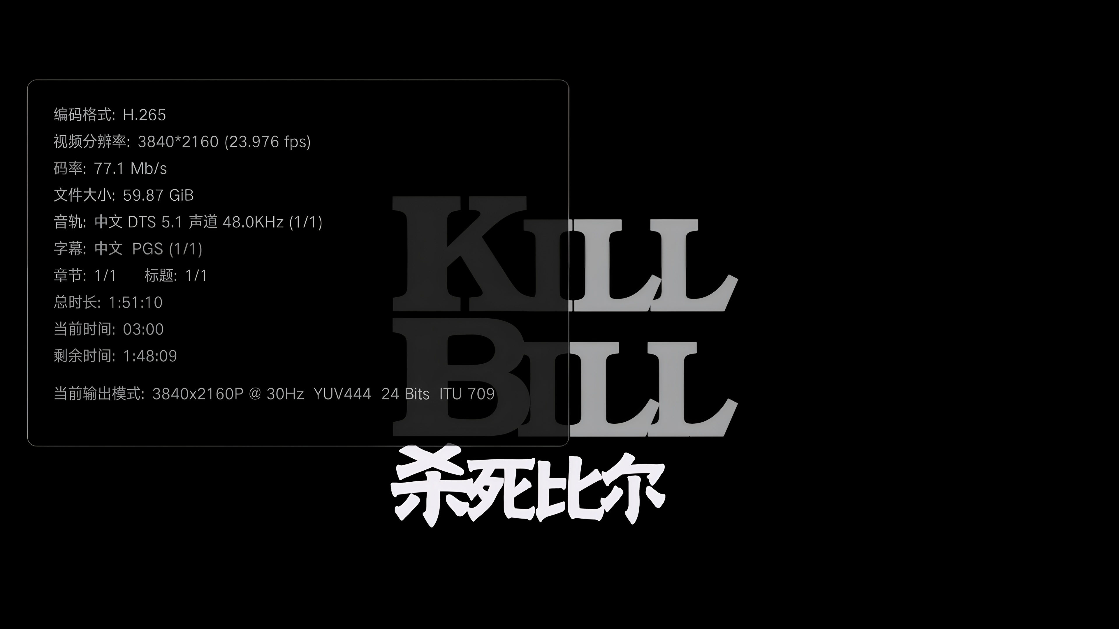 杀死比尔.Kill Bill: Vol1.2003.2160p.UHD.BluRay.REMUX.HEVC.国语 DTS 5.1 特效中文字幕 杜比视界【60GB】